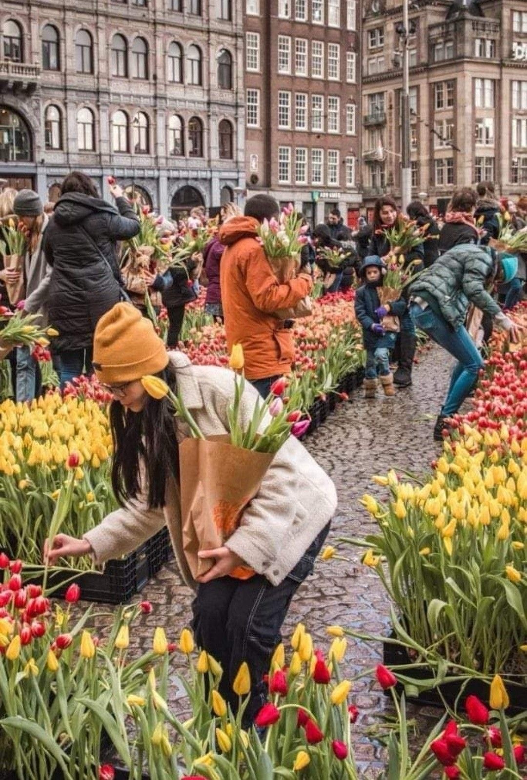 Perché sì, Amsterdam ha distribuito 200.000 tulipani gratuiti per celebrare la Giornata Nazionale del Tulipano dei Paesi Bassi, segnando l’inizio della stagione internazionale dei tulipani recisi . Avete letto bene: GRATIS. Nella terra del capitalismo, del turismo di massa e dove tutto ha un prezzo, qualcuno ha detto “prendetevi pure i fiori, offre la casa!” È un po’ come se improvvisamente la Svizzera regalasse cioccolato o l’Italia distribuisse pasta a chiunque passi. Un evento così raro che quasi non ci si crede.